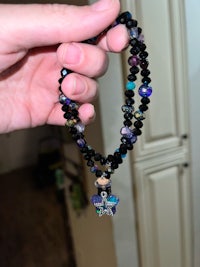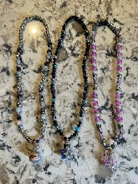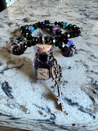 Sapphire Wolf Creations is like a little peak into the happiest part of my soul! My name is Becca Greene and I started making these necklaces to relieve stress and clear my head. I started getting requests for custom styles, and Sapphire Wolf Creations was born! I can customize the necklaces in many ways. Bead colors, charms, jewelry wire, potion bottle shapes and different materials and colors for inside the jars. I love being given a color scheme and creating something unique and beautiful! Please let me know what you have in mind for yourself or a one of a kind gift and I would be happy to help you design something special!